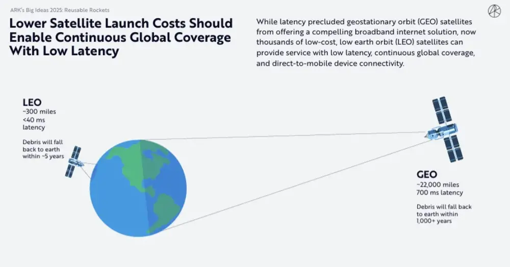 SpaceX 星舰的成功,恰似可重复使用火箭技术的“成人礼”。发射成本大幅降低,卫星带宽成本急剧下滑,Starlink 用户数量迅猛增长……ARK 报告凭借数据,勾勒出“太空经济”的“起飞”蓝图。